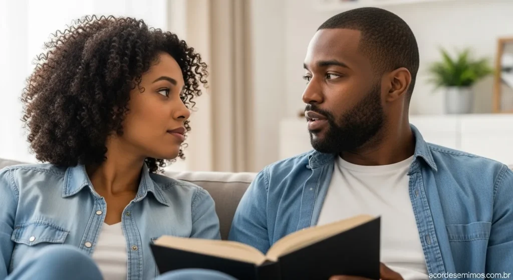 Compartilhar um livro, uma história, ou até mesmo um artigo, é como plantar uma semente no terreno do relacionamento de vocês. De repente, vocês têm um mundo novo para explorar juntos. Vocês leem a mesma frase, sentem a mesma emoção de um personagem, e boom! Surge um assunto, uma pergunta, uma lembrança. É um convite para diálogos que vão muito além do “como foi seu dia?”.